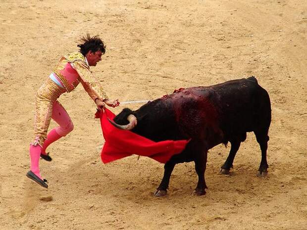 Испытывая быка на механических матадорах с тряпками разных цветов (неподвижными и колеблющимися), эксперименты показали, что бык звереет от колеблющейся тряпки, а не от красного цвета или силуэта человека. Наконец, эксперт провел «смертельный трюк», простояв неподвижно на площадке в красном костюме, пока два профессиональных ковбоя дразнили быка. В общем, несмотря на то, что быки различают цвета (у них дихроматическое зрение), реагируют они на движение.