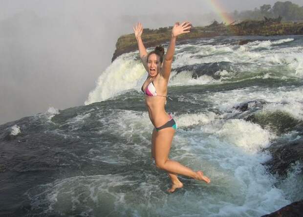На краю водопада есть так называемый уголок под названием «Бассейн Дьявола». Казалось бы, плавать здесь совершенно невозможно, но это не так. Есть место типа ниши, где течение немного замедляется. Если туда прыгнуть, течение быстро понесет вас к краю пропасти, но вы уткнетесь в стенку, которую под водой не видно. Гид, который будет вас страховать, будет держать вас за ноги, а вы будете держаться за стенку руками. Потом вместе с гидом вы, цепляясь за скалу, выбираетесь из ниши. Есть ли жертвы, пока неизвестно.