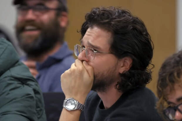 В документальном фильме посвященном съемкам сериала компания HBO показала реакции актеров на сценарий заключительной серии саги. Так, исполнитель роли Джона Сноу Кит Харингтон схватился за голову, а Эмилия Кларк, сыгравшая Дейенерис, начала кривляться и сползла под стол.