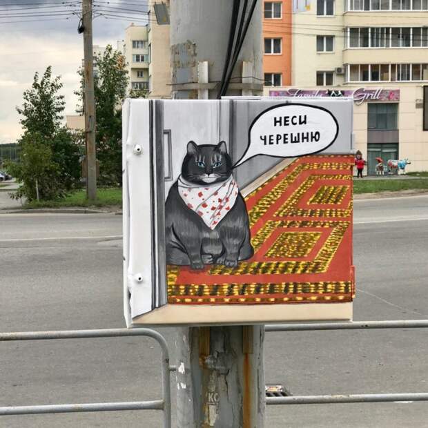 Мем про черешню так сильно понравился участникам сообщества «Челябинский урбанист» , что они решили увековечить его на трансформаторном шкафе в одном из районов города.