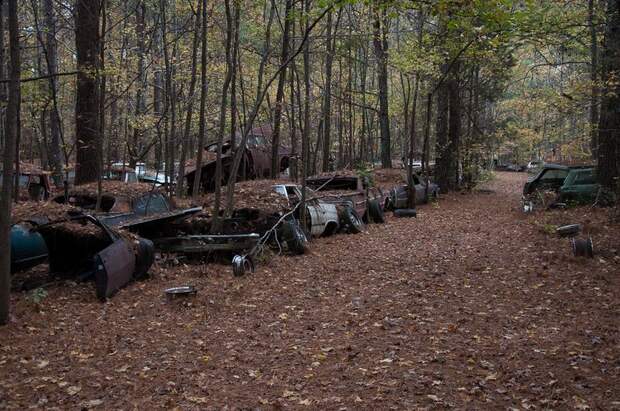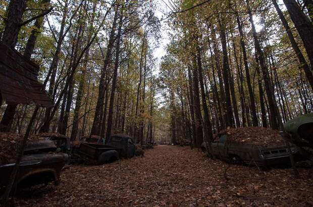 В 50 милях от Атланты располагается участок леса, полный ржавых машин. На табличке написано: «Самое старое в мире кладбище автомобилей, 80 лет»