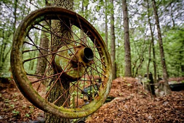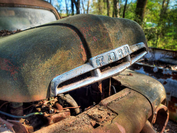 В 50 милях от Атланты располагается участок леса, полный ржавых машин. На табличке написано: «Самое старое в мире кладбище автомобилей, 80 лет».
