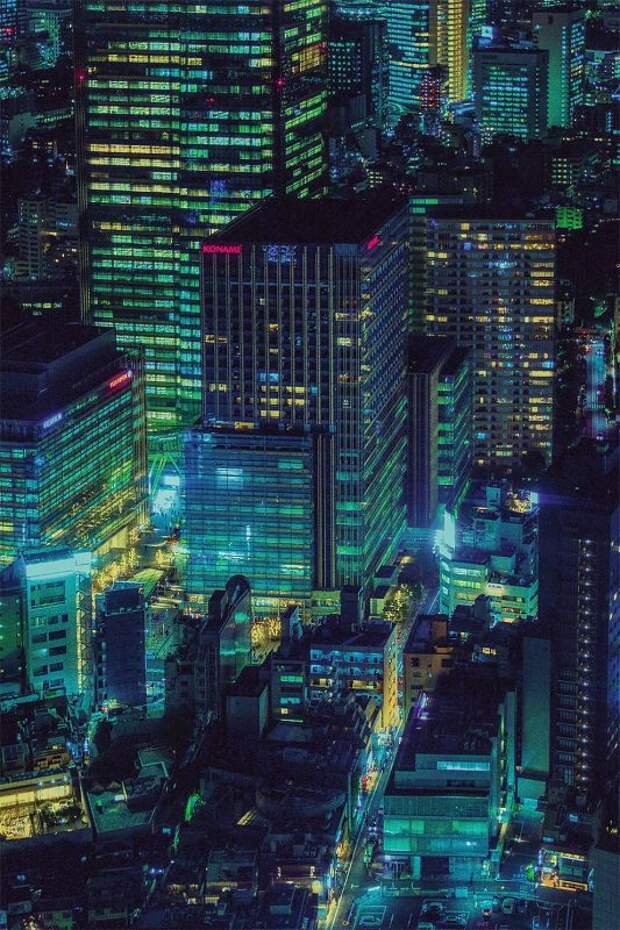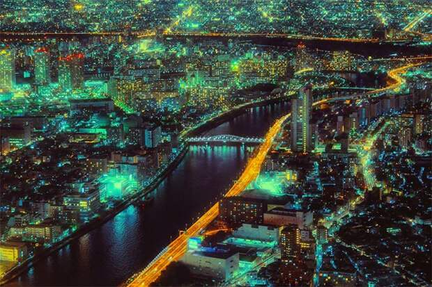 Потрясающие фотографии демонстрируют огромные масштабы сердца Японии, которое бьется в учащенном ритме и днем, и ночью. Город завораживает созвездиями окон и фонарей, которые делают его похожим на небольшую галактику.