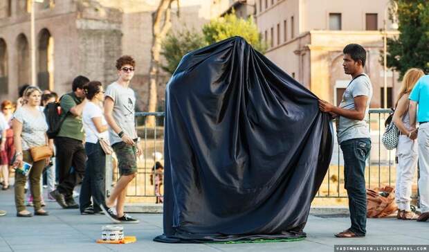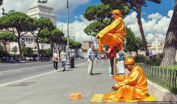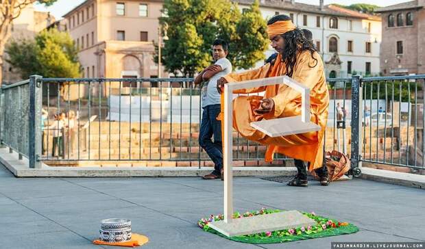 Пишет Вадим Нардин: «Прогуливаясь в Риме по оживленным туристическим улицам, я очень часто встречал левитирующих уличных типайогов.