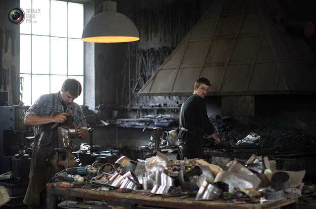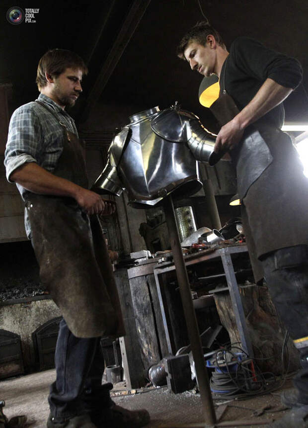 Братья Иоганн и Георг Шмидбергер изготавливают доспехи для Швейцарской гвардии Ватикана в своей кузнице в Мольне, Австрия. (LISI NIESNER/REUTERS)
