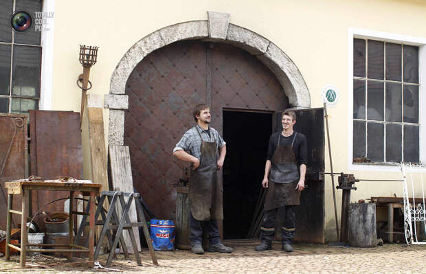 Братья Иоганн и Георг Шмидбергер стоят возле своей кузницы в Мольне, Австрия. (LISI NIESNER/REUTERS)