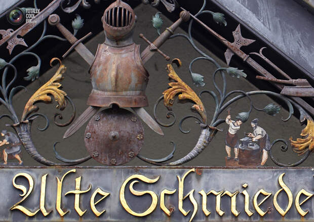 Вывеска «Старая кузница» на кузнице братьев Иоганна и Георга Шмидбергер в Мольне, Австрия, 12 июня 2012 года. 29-летний Иоганн и 28-летний Георг куют доспехи для Швейцарской гвардии Ватикана. (LISI NIESNER/REUTERS)