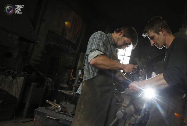 Братья Шмидбергер куют доспехи для Швейцарской гвардии Ватикана в своей кузнице в Мольне, Австрия. (LISI NIESNER/REUTERS)