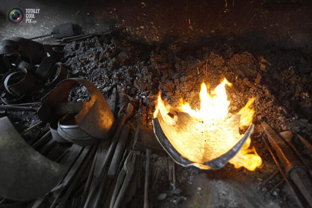 Часть доспеха лежит у очага в кузнице братьев Шмидбергер в Мольне, Австрия. (LISI NIESNER/REUTERS)