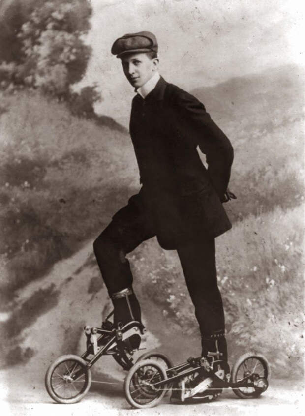 К началу ХХ века в США уже вовсю катались на роликовых коньках, которые по своей конструкции были похожи на сегодняшние. А в Европе в это время популярностью пользовались педальные ролики Takypod, изобретенные Эдвардом Петрини. Выглядят на удивление современно, не так уж сложно представить такие штуки в магазине спортивных товаров.
