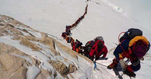 Сюда стоит добавить сильный ветер, беспощадное ультрафиолетовое облучение и недостаток кислорода, чтобы понять, что затея со стоянием в очереди не самая лучшая. Когда альпинист оказывается выше отметки 5000 метров, счет идет не а часы, а на минуты и каждое лишнее мгновение на склоне отнимает жизнь.