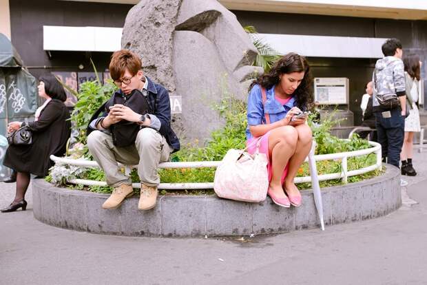 14. Японцы, а особенно молодежь, совершенно не расстаются с мобильными телефонами. Вот могут на платформе в ожидании поезда стоять 15 человек, 13 из них будут тыкать в свои мобильные. Не вру, считала.