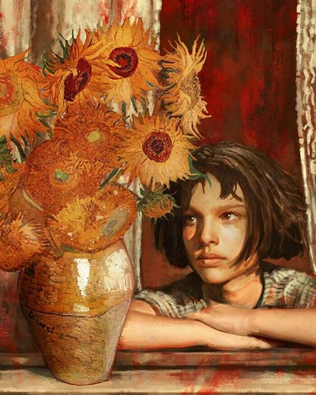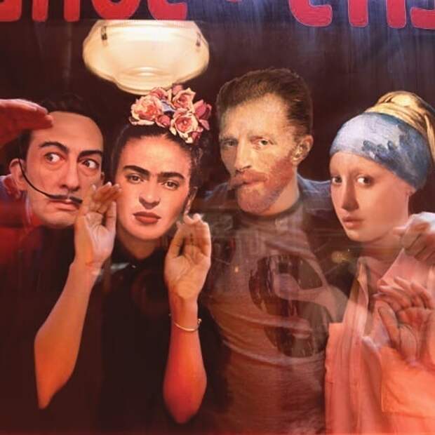 А тут вообще подружил Фриду с Сальвадором Дали, Ван Гогом и героиней его картины «Девушка с жемчужной сережкой».