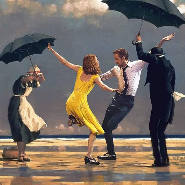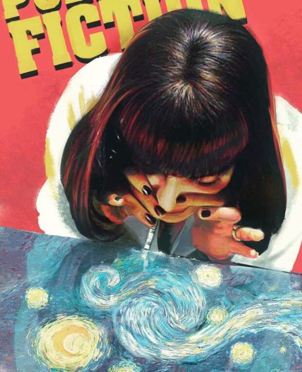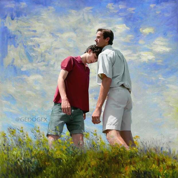 Некий дизайнер, известный в интернете под псевдонимом Gedo, сочетает на коллажах картины знаменитых художников XX века и популярные произведения современного кинематографа. Так, например, в его профиле Instagram, где он публикует все свои работы, можно увидеть персонажей ленты «Остров проклятых» на картине Густава Климта «Поцелуй» или героев «Криминального чтива» на фреске Микеланджело «Сотворение Адама».