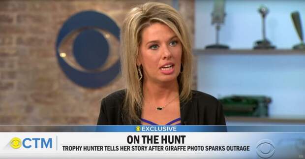 На просьбу рассказать, как она убила черного жирафа во время поездки в Южную Африку, охотница рассмеялась и сказала: «Он был вкусным».