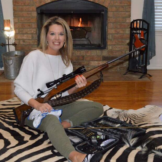 На фотографиях Тэлли находится в своем доме в Одессе, штат Техас. Она одета в камуфляжный костюм и охотится на диких зверей на ранчо.