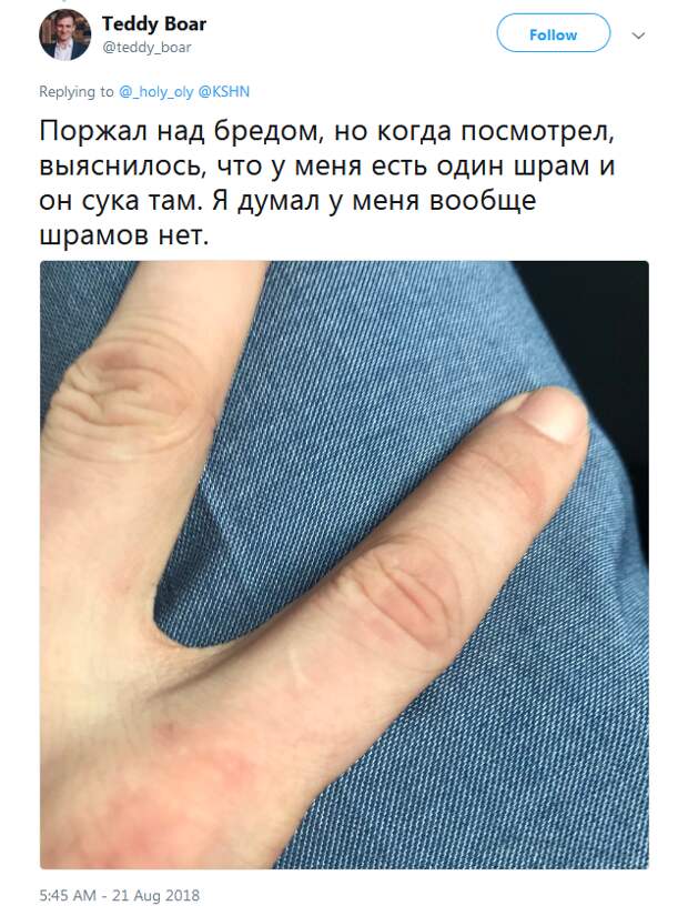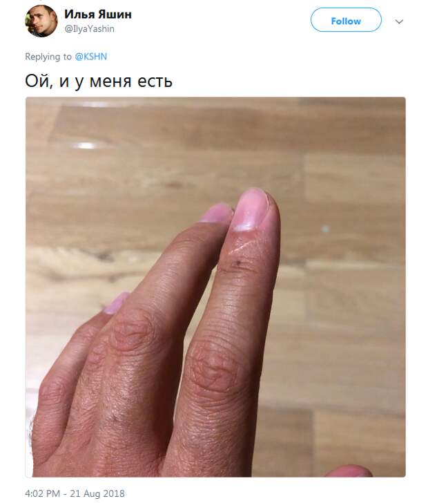 […]Из-за призыва в Твиттере, мужчины внезапно осознали, что у каждого из них есть шрам на указательном пальце. Но девушкам есть что на это возразить.