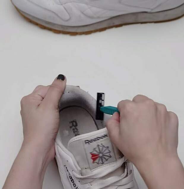 Белые кроссовки выглядят красиво и стильно, но крайне быстро пачкаются. Эксперты бренда Reebok показали, как с помощью простых подручных средств почистить обувь за считанные минуты. Вам потребуются бритва, зубная щетка, пищевая сода, вода, жидкость для снятия лака, перекись водорода и немного средства для мытья посуды.