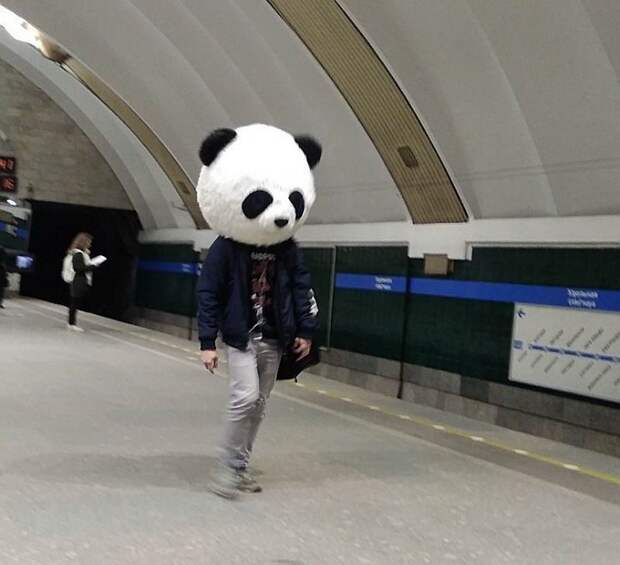 Ничего необычного, просто парень с огромной головой панды.